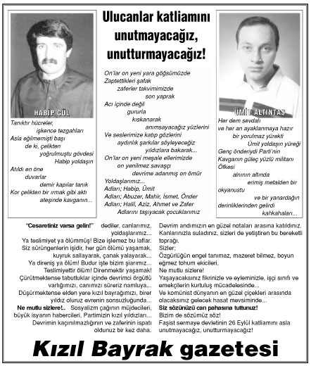 Ulucanlar Cezaevinde ölümsüzleşen ON canımızdan Habip GÜLün (Nevzat Çiftçi) katledilişinin birinci yıl dönümünde tüm devrimci-demokrat dostlarımızı aramızda görmek istiyoruz.
