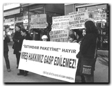Basın metninde şunlar söylendi: “Sermaye hükümeti, IMF’nin ve patronların istekleri doğrultusunda hazırladığı Sosyal Sigortalar ve Genel Sağlık Sigortası Yasa Tasarısı ile sağlık ve emeklilik hakkımızı elimizden alıyor ve emzirme ödeneğini düşürüyor. Sermaye hükümetinin bu saldırısı dışında, bir de ‘istihdam paketi’ ile işçi ve emekçilerin kazanılmış haklarına göz dikilmektedir. Sermaye hükümetinin, işsizlikle ve kayıtdışı istihdamla mücadele adına tartışmaya açtığı istihdam paketi gerçekte işçiler açısından yeni hak kayıpları getirecektir. (...) İşçi Kültür Sanat Evi Kadın Komisyonu olarak sermaye hükümetinin kreş hakkını gasp etmeye yönelik hazırladığı ‘istihdam paketini’ kabul etmiyoruz ve bu pakete karşı mücadelemizi sürdürmeye devam edeceğiz.”